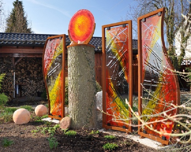 Fusing Glas Stelen / Trennwände, Zäune, Brunnen oder Wasserlauf können wir individuell für ihren Garten oder Terrasse entwerfen und anfertigen .