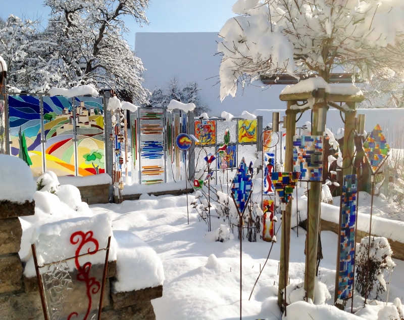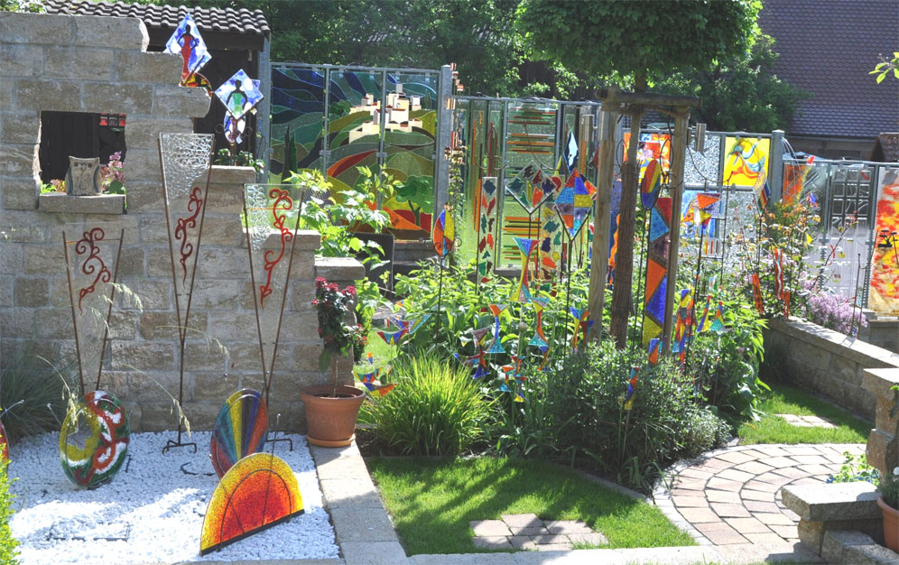 Gartenarchitektur in Verbindung mit Schmelzglas.