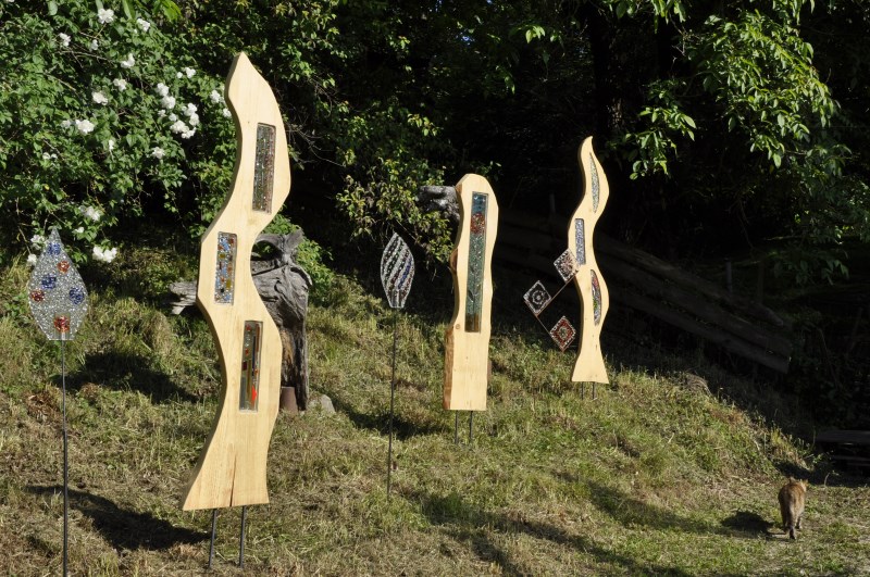 Die Massivholz – Stelen von Inge Ehrensperger (langjährige Kursteinnehmerin) ein weiteres Highlight im Sonnenlicht…