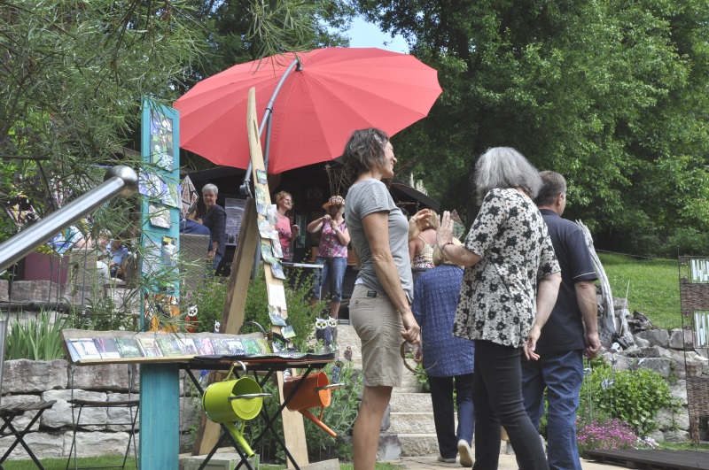 Die Gartenfee Fips ( Fa.Naturraum Altdorf ) informierte … am laufenden Band … über die Pflanzenpracht im Glas Garten …