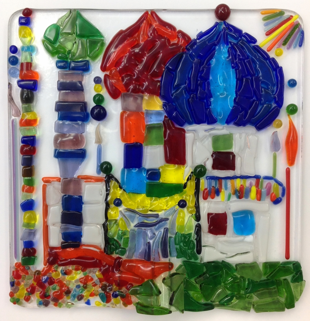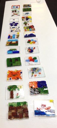 Jedes Kind (sowie Lehrkraft) stellt eine kleine persönliche Glasplatte her.