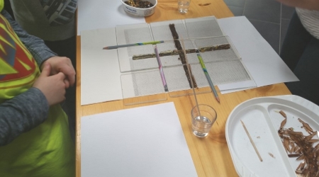 Hinter ihren Schutzbrillen werkelten die Kleinen mit den Großen. Anfängliche Berührungsängste waren schnell vergessen, konnte man doch sehen, wie schnell die Werke Gestalt annahmen.